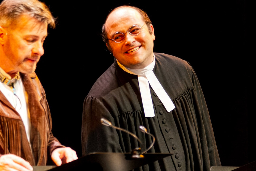 Direkt auf der Bühne lässt er mit alltäglichen Gegenständen ganze Welten entstehen: knirschender Sand unter Stiefeln, galoppierende Pferde, knallende Schüsse oder das Knarren einer Postkutsche. Mit geübten Handgriffen, Fantasie und perfektem Timing verwandelt er einfache Materialien in lebendige Klangbilder und macht so das Kopfkino des Publikums perfekt. Gemeinsam schaffen sie ein spannendes Abenteuer voller Spannung, Tempo und Atmosphäre.